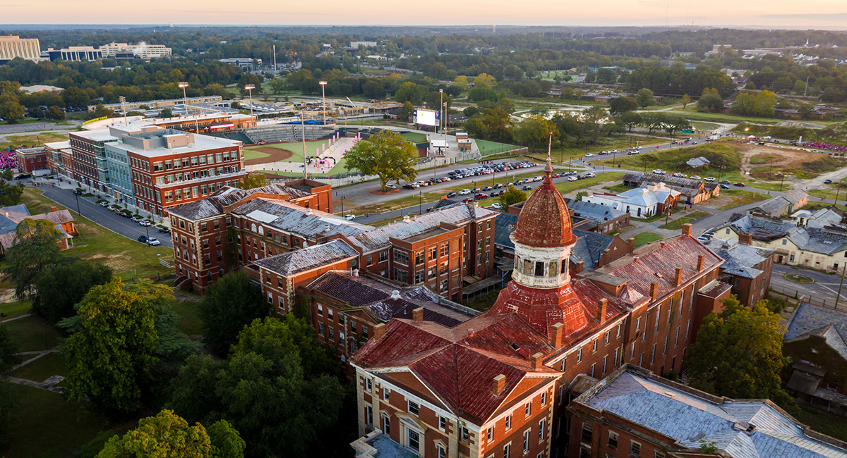 The property that once housed the state’s psychiatric hospital, BullStreet is now home to the region’s largest urban revitalization project, including a minor league baseball stadium, an office building and more. The university plans to develop a health sciences campus at the site to include the School of Medicine. Photo by Jeff Blake