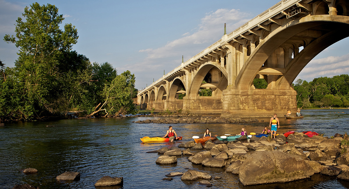 With several local governments and the nonprofit River Alliance coming together, the past two decades have seen a lot of progress in Columbia’s longstanding efforts to realize the potential of its rivers. Riverfront Park opened all the way back in 1983, but more recent additions include the West Columbia Riverwalk Amphitheatre and the Three Rivers Greenway, plus plenty of options for tubing and kayaking. There’s also a Saluda Riverwalk extension in the works. Not to be overlooked are some close connections to the university, including the 12,000 Year History Park, a unique archeological site long championed by Cayce Mayor Elise Partin, who also serves as adjunct faculty in the Arnold School of Public Health; pop-up beer events by alumnus Scott Burgess (see “Breweries”); Stormwater Studios, which often features artworks by UofSC faculty and students; and Foundation Square (see entry above), a public urban park that will eventually connect campus to the riverfront.