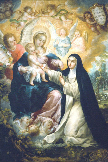 Artist Nicolas Correa’s 1695 painting of Saint Rose of Lima, the first Catholic saint born in “New Spain,” shows her metaphorical marriage to a blond, light-skinned Christ.