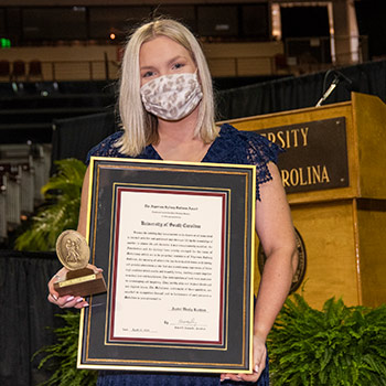 Rushton also was named the 2021 UofSC Outstanding Senior and received the President’s Award as well as being named the 2020 Greek Woman of the Year for her work leading the Alpha Chi Omega sorority.