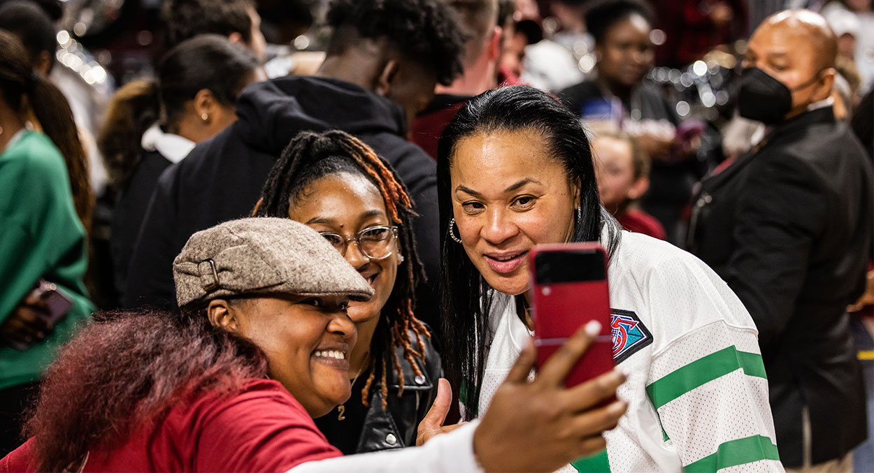 That success is reflected in the stands. Home games at Colonial Life Arena are now packed with fans (or “fams,” as they are affectionately known) and the Gamecocks have led NCAA attendance for the past eight years. Fams also packed the Pastides Alumni Center this summer to celebrate the Gamecocks’ latest title — and to applaud Staley.