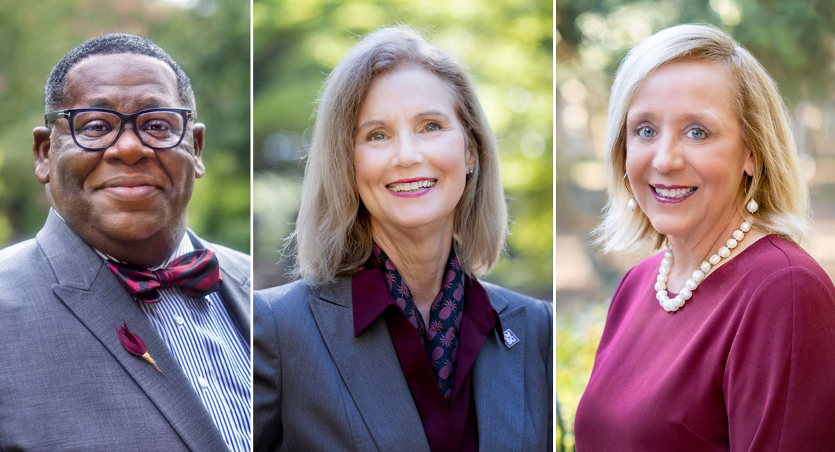 J. Rex Tolliver, vice president for student affairs and academic support; Donna K. Arnett, executive vice president for academic affairs and provost; Michelle Dodenhoff, vice president for development.