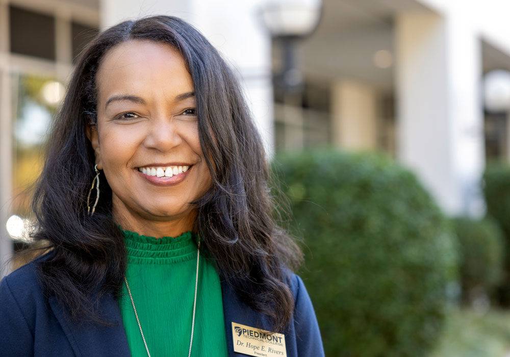 Hope Rivers could be the poster child for the value of education, the importance of mentorship, the necessity of empathy. The first Black female president of Piedmont Technical College, she also understands the experience of the many first-generation, low-income college students on campus.