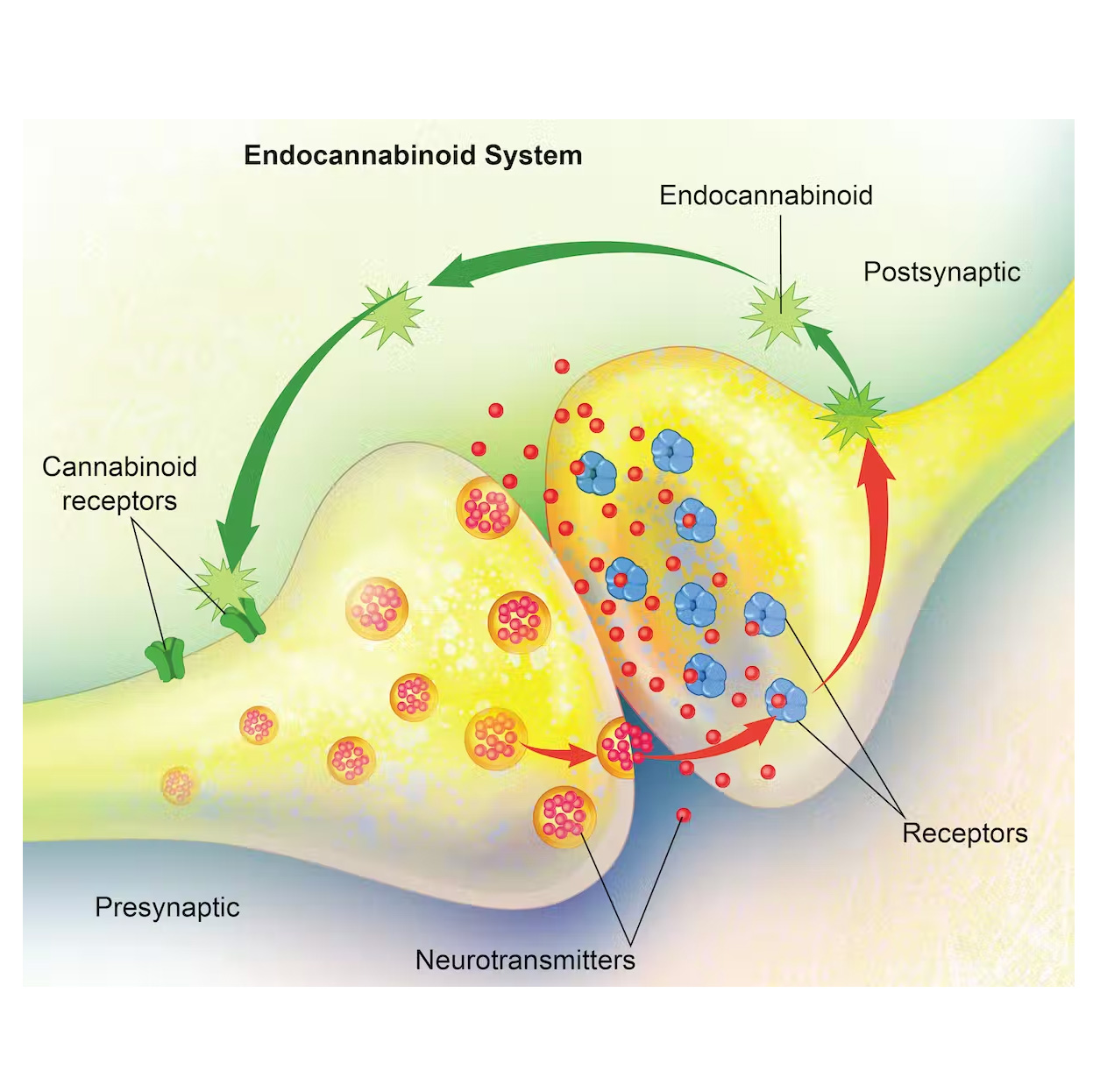The endocannabinoid system – consisting of the endocannabinoids and the cannabinoid receptors – regulates nerve cell communication at the synapse, thereby playing a role in a variety of bodily functions. Carolina Hrejsa, CMI/iStock/Getty Images Plus via Getty Images