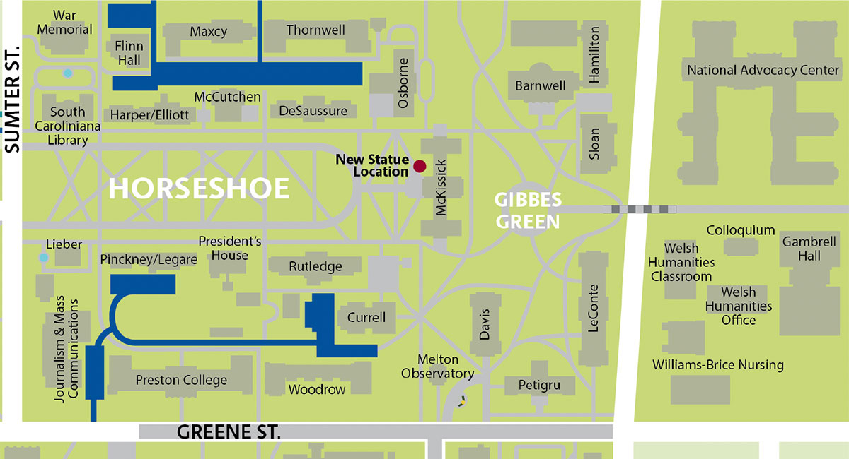Board Chairman Thad Westbrook said the statue’s eventual location on the Horseshoe is fitting. “Since the university was founded in 1801, the Horseshoe has remained our most defining location, and this monument will be just steps away from where these three pioneering students first began their journey at USC.”