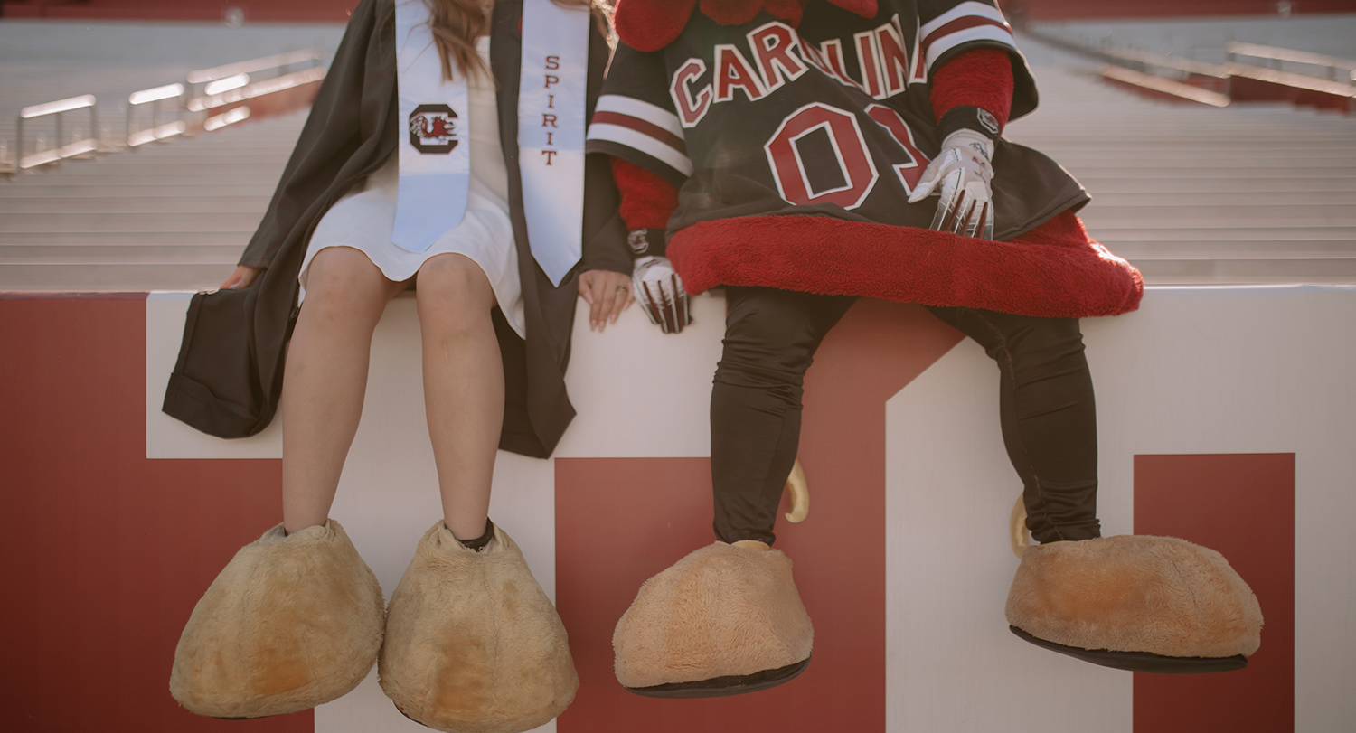 Now, she is ready to complete one of her last official acts as Cocky, donning the iconic yellow mascot shoes and walking across the graduation stage at Colonial Life Arena. There may not be any more tailfeathers to shake, but she takes with her two years of memories.