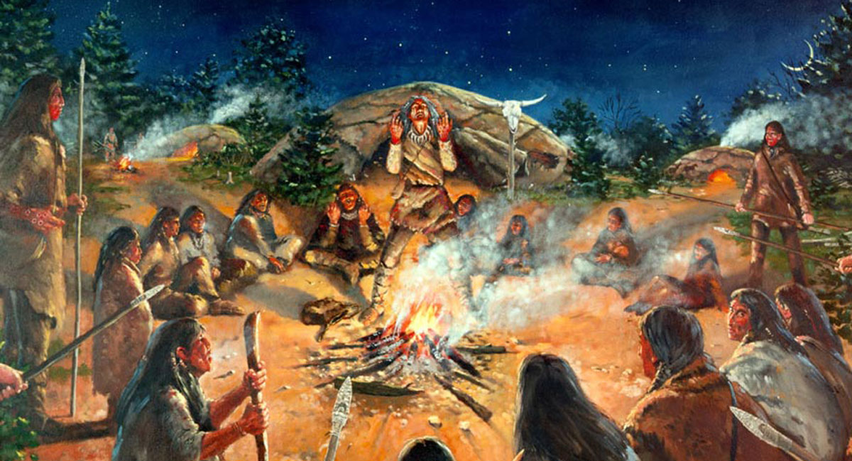 The earliest people who lived in North America shared the landscape with huge animals. On any day these hunter-gatherers might encounter a giant, snarling saber-toothed cat ready to pounce, or a group of elephantlike mammoths stripping tree branches. Maybe a herd of giant bison would stampede past.