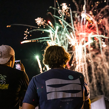 block party. The night ends with a fireworks show shot from the top of Russell House.