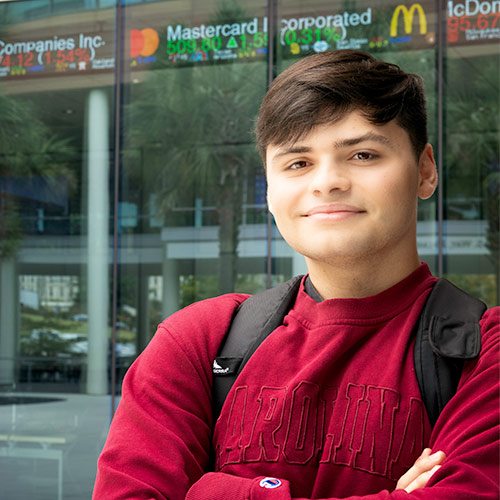Raised in Charleston, USC was never far from Blaize Murphy’s radar. A junior majoring in accounting and finance, Murphy’s journey to pursue a degree in the Darla Moore School of Business was a bit of a challenge. “I feel like first gens are pretty resilient,” he says. “You find a way to roll with the punches.”