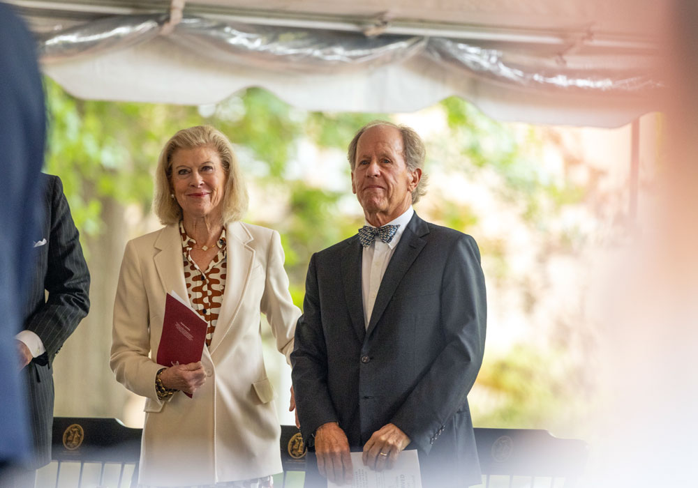 The official name, the McCausland College of Arts and Sciences, was announced on Wednesday (April 23) during a ceremony on the university’s historic Horseshoe. The name recognizes a transformational gift from Bonnie and Peter McCausland and The McCausland Foundation. Their gift will create one of the nation's premier career development programs for students in the liberal arts and sciences, expand research and teaching in neuroscience and brain health, and support faculty excellence.