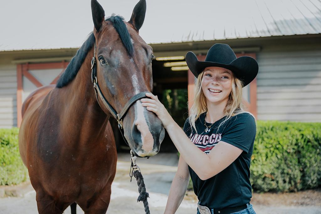 “Before college, I competed with youth across the nation and learned about being a leader as the president of the American Junior Paint Horse Association. But even before that, I learned a lot about being in a community,” she says.